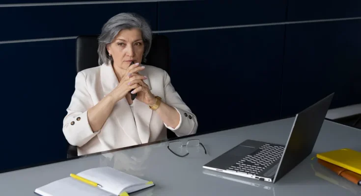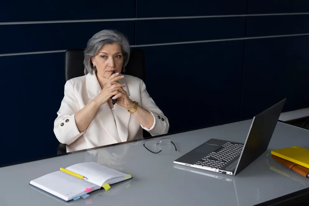 A senior woman seated in her office | Source: Freepik