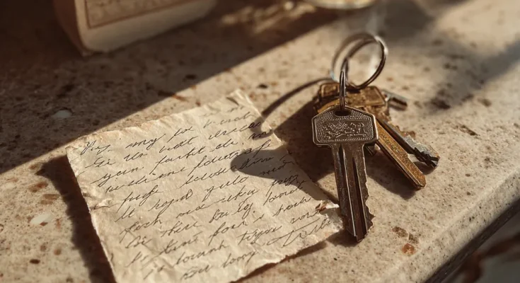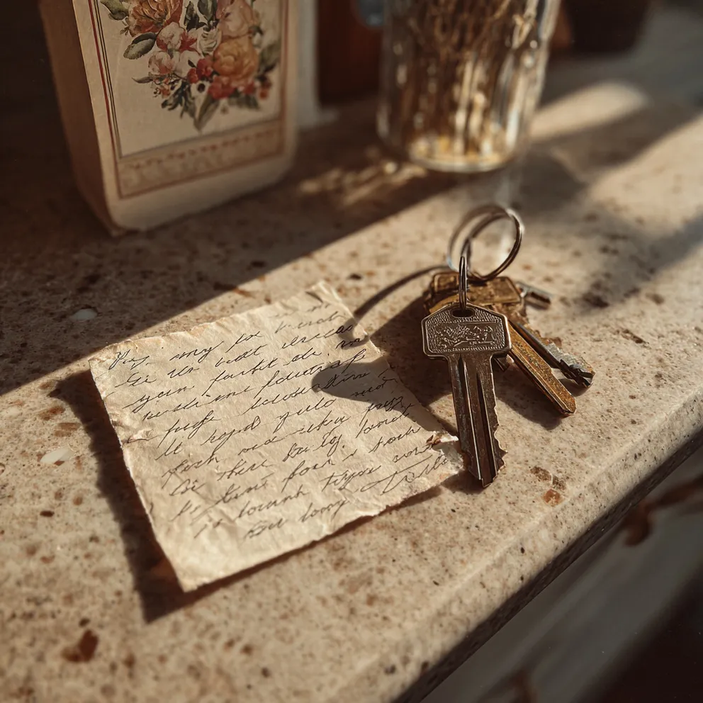 A note and keys on a counter | Source: Midjourney