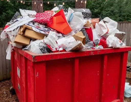 A red dumpster in a backyard | Source: Midjourney