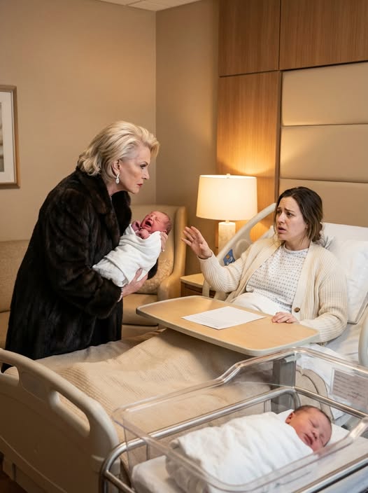 I had just survived an emergency C-section when my mother-in-law walked into my recovery suite, dropped adoption papers on my bed, and calmly told me she was taking my newborn son for her daughter. Then she called me unstable and tried to turn security against me. What she didn’t know was that I had spent years hiding who I really was—and the moment the chief recognized my name, the entire room changed.