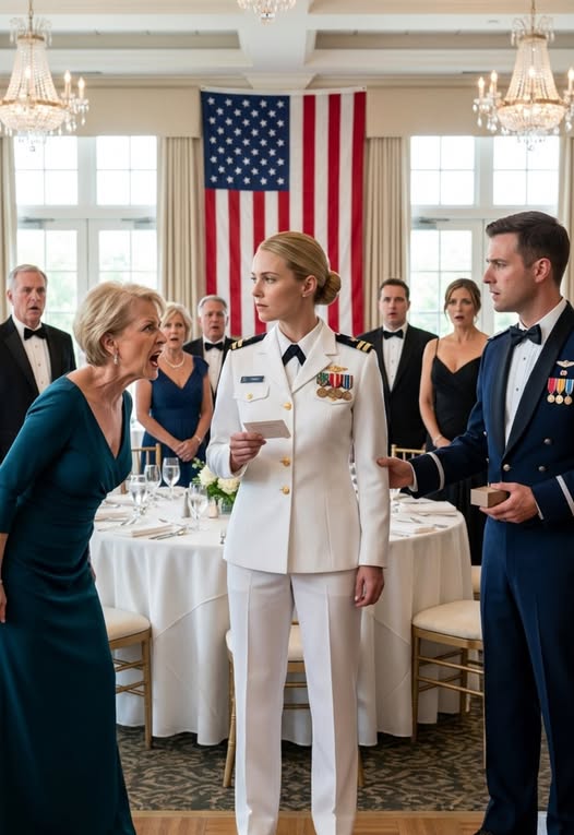 When I returned to the ballroom in my full dress whites, the change in the atmosphere was immediate because my uniform carried the weight of fourteen years of hard work and two overseas deployments. The eagle insignia on my shoulders and the rows of ribbons on my chest told a story that every officer in the room respected without question.