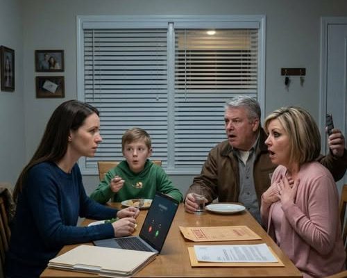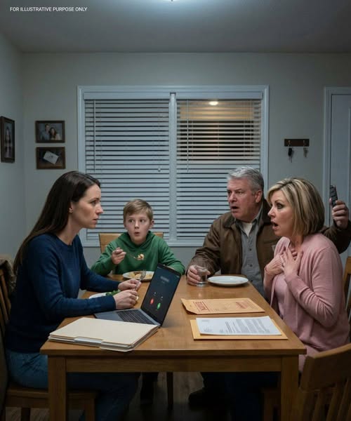 “You and your kid are nothing but freeloaders.” My father hurled the words across the dinner table so loudly the silverware rattled. His face burned red, neck cords tight—rage I remembered from my teen years, the kind he used whenever he wanted to win by sheer force. He leaned in close, hands planted on the table like he might tip the whole thing over. My mother didn’t protest. She didn’t even look surprised. She gave a small, icy smile and nodded once—like he’d finally said the part they’d been thinking all along. And the cruelest part? We were eating in a dining room that didn’t belong to them anymore. They were still living in my house. A house I bought quietly, legally, and without drama—because banks don’t accept tears, prayers, or guilt as payment. My son, Dylan, was twelve. He sat beside me with his shoulders drawn tight, eyes glued to his plate like if he stayed perfectly still, he could disappear. I’d brought him because this dinner was supposed to be “family.” I wanted him to believe family could be safe—that love didn’t come with humiliation, that you weren’t treated like a burden by people who claimed you. I wanted that so badly I