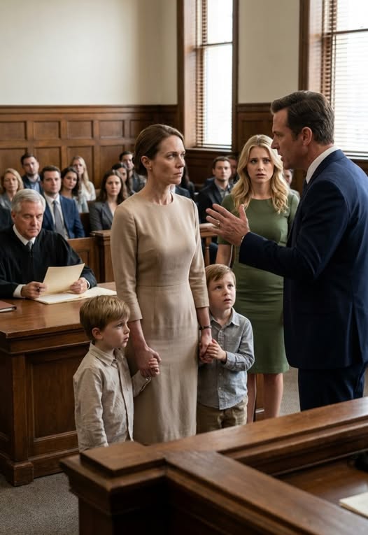 “You’ll Leave With Nothing… And I’ll Take The Kids,” My Husband Said As His Mistress Smiled In Court — But When I Walked In With Our Twin Boys, The Truth About His Company Made Even The Judge Go Silent