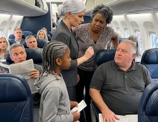 By the time the argument began, most first-class passengers had already labeled it: a seat dispute, an entitled traveler, a minor delay—annoying but routine. Then ten-year-old Amani Barrett spoke calmly, holding her boarding pass. “I’m not arguing. I just want my seat.” The man in 3A didn’t move. Middle-aged, irritated, and dismissive, he acted as if she were the problem. Lorraine Parker stepped in. “Sir, that seat belongs to her. Show your boarding pass.” The flight attendant, Kimberly, repeated the request. The man flashed something briefly, then hid it again. Amani frowned. “That’s not 3A.” Passengers started paying attention. Kimberly’s tone hardened. “I need to see it clearly.” “I already showed you,” he snapped. “No. You didn’t.” The cabin turned tense. “Stand up,” Kimberly said. “No.” Whispers spread. The crew signaled the cockpit. “If you don’t comply, this flight won’t depart,” Kimberly warned. That rattled him—but instead of backing down, he doubled down. “I paid for first class. I’m not moving for a kid with a nanny.” The mood shifted. His words weren’t subtle anymore. Then Lorraine got a call—from Amani’s father, Marcus Barrett. He