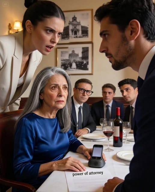 When I refused to pay for my daughter’s luxury wedding, she blocked me everywhere as if I were a stranger. Days later, I received her message: a “reconciliation dinner.” I arrived with my heart in my throat, but instead of hugs, three lawyers were waiting for me, along with a power-of-attorney document laid out on the table. She looked at me with cold eyes and said, “Either you sign it, or you’ll never watch your son—my child, your grandson—grow up again.” So I opened my purse, dialed a number, and whispered, “Alright… but first, someone would like to say a few words.” My name is Carmen Gutiérrez. I’m fifty-eight years old, and I thought that by this point in my life the biggest scares would come from my doctor—not from my own daughter. It all started a month ago, on a terrace in Lavapiés. My only daughter, Lucía, sat across from me with her brand-new phone on the table and a wedding-venue catalog open to a page that read: “Premium Package – €65,000.” “Mom, that’s normal these days,” she said, as casually as if she were commenting on the weather between coffees. “Diego has looked at weddings of his friends and none of them cost