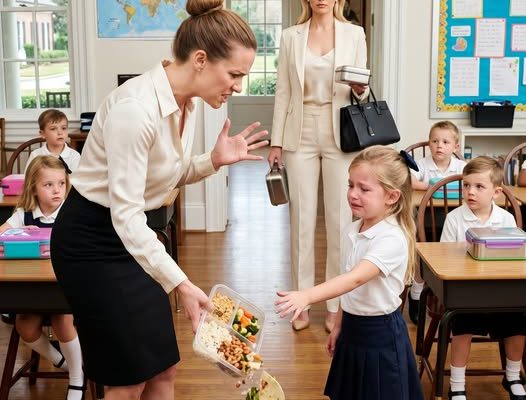 Standing in front of her was her teacher, Ms. Caldwell, holding the container I had prepared that morning, her expression twisted with visible disgust as she looked down at Emily like she was something unpleasant to deal with rather than a child to guide.