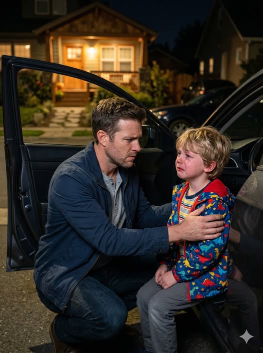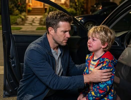 The Quiet Ride Home: The late Sunday evening settled over a quiet suburban street outside Phoenix, where the air still carried traces of heat from the day, and where Julian Mercer sat behind the wheel of his black SUV, watching the front door of his former wife’s townhouse as though he were waiting for something he could not yet name, something that pressed faintly against his instincts in a way that had been growing stronger with each passing weekend. When the door finally opened, his nine-year-old son, Owen, stepped out slowly, his small backpack slipping down one shoulder, and although nothing about the scene should have felt unusual at first glance, there was something in the way Owen moved—measured, careful, almost rehearsed—that made Julian’s grip tighten around the steering wheel before he even realized it. “Hey, buddy, what’s going on with that walk?” Julian asked as he stepped out of the car, keeping his tone light even as a quiet tension built beneath it. Owen looked up, offering a small smile that didn’t quite reach his eyes, and for a moment, he seemed to search for the right answer rather than simply saying it. “I’m okay,