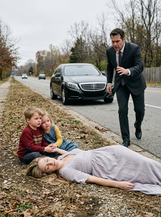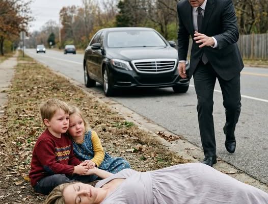 Next to her stood two toddlers, a boy and a girl, both small enough that their presence felt almost fragile against the harshness of the street, their hands tugging at her sleeve with the desperate persistence of children who do not yet understand why something familiar suddenly stops responding.