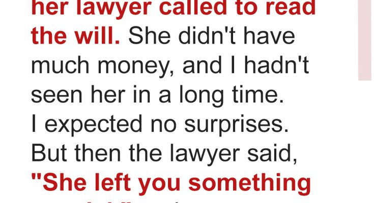 “I’m afraid she passed away last week. She named you in her will. I’ll need you to come in for the reading.”